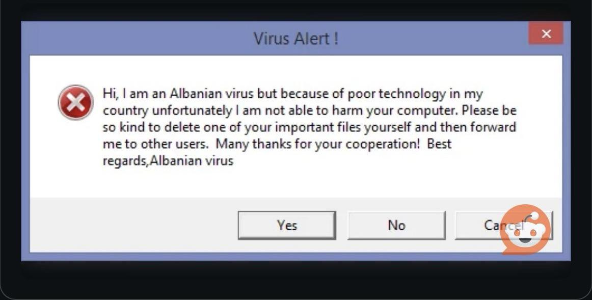For me the Albanian Virus meme is a masterpiece ahead of even the “ when allah created the world allah did give whole world to Albania but Albania friendly countrie so Albania give land to other countrie.” meme